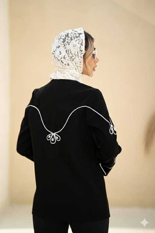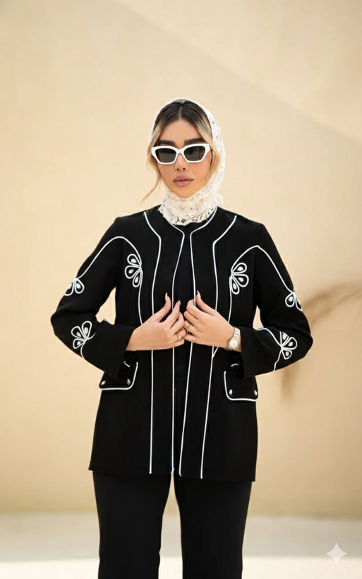 اگر بهدنبال کت زنانه خاص، شیک و متفاوت هستید که هم در مجالس رسمی بدرخشد و هم استایل اداری شما را لوکستر کند، این کت زنانه مجلسی مشکی با گلدوزی سفید ظریف یکی از بهترین انتخابهای شماست.