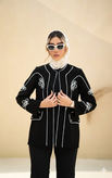 رنگ مشکی کلاسیک در کنار خطوط سفید گلدوزی، باعث شده این مدل بهراحتی با انواع شلوار پارچهای، شلوار جذب، دامن یا ستهای مجلسی ترکیب شود.